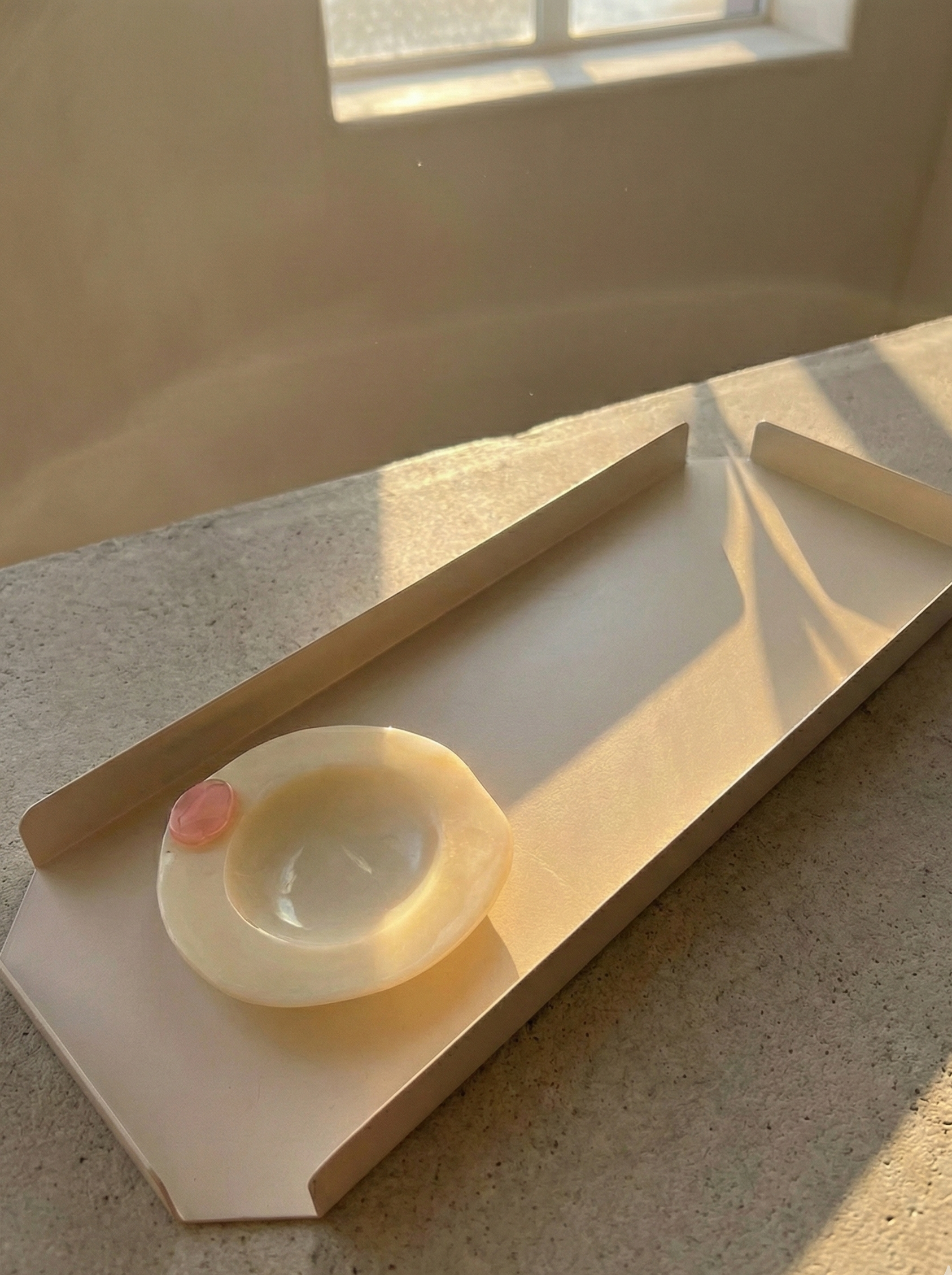 Metal matte cream sleek tray.